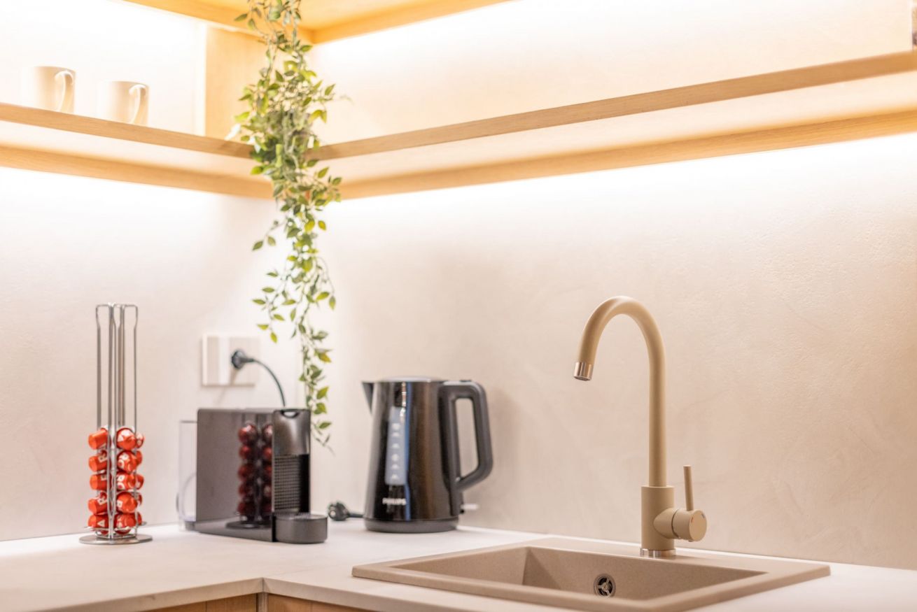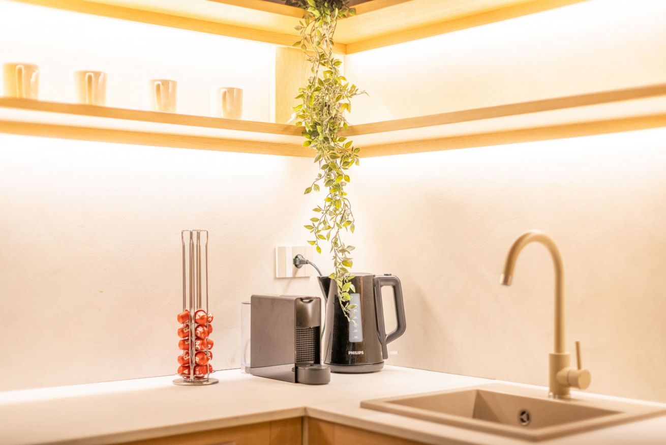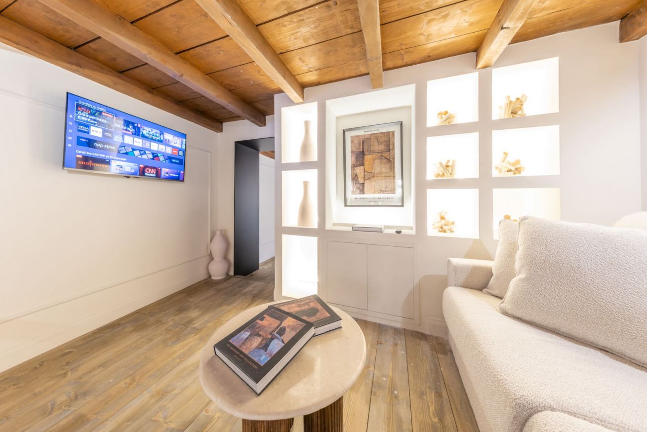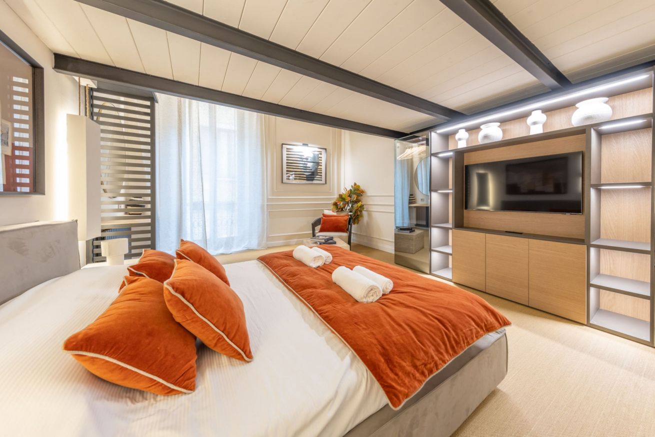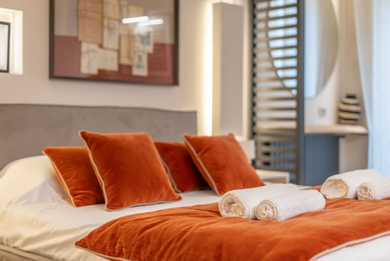 L’appartamento offre 4 posti letto in due eleganti camere, un bagno lussuoso e una moderna cucina completamente attrezzata. Gli spazi luminosi e dal design contemporaneo lo rendono l’alloggio perfetto per rilassarsi dopo una giornata dedicata allo shopping o agli impegni di lavoro.