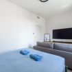 Il soggiorno è un'oasi di eleganza, con ampie finestre che inondano l’ambiente di luce naturale, e un'atmosfera accogliente. Qui troverai un'area salotto con divani eleganti e una TV a schermo piatto.